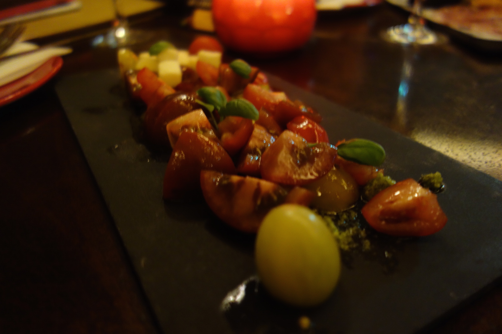 We ordered a few appetizers as well. We were only staying for a bit before heading out for the evening, so we opted for a simple tomato and balsamic dish, the Tomate Con Arzúa.